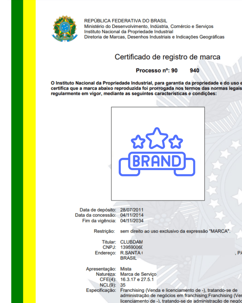 Após analise do INPI sua marca é registrada com sucesso e tem certificado de validade de 10 anos.